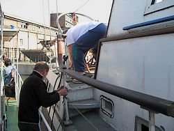 przemysłowego, statek nie dobił do nabrzeża lecz zacumował do jednej z